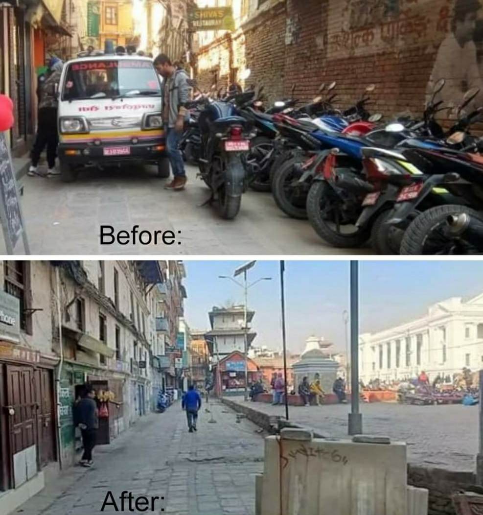 विश्व सम्पदा क्षेत्र बसन्तपुरस्थित डबली छेउको पार्किङ हटाएको छ । मरु निस्कने गल्लीबाटोमा अबदेखि पार्किङ गर्न निषेध गरिएको छ। लामो समयदेखि निःशुल्क पार्किङ रहेको सो क्षेत्रमा पार्किङको कारण आवतजावतमा समस्या भएको थियो। काठमाडौं महानगरपालिका वडा २३ स्थित पर्ने क्षेत्रमा मानिसहरुको भिडभाड हुने बसन्तपुरमा व्यवस्थित पार्किङको समस्या देखिएको थियो। पछिल्लो समय काठमाडौं महानगरपालिकाले धमाधम पार्किङ हटाउन थालेको छ। पार्किङकै विषयलाई लिएर व्यवसायीहरुले महानगरले बैकल्पिक व्यवस्था विना पार्किङ हटाउँदा व्यवसायमा असर परेको बताउँदै आएका छन्।