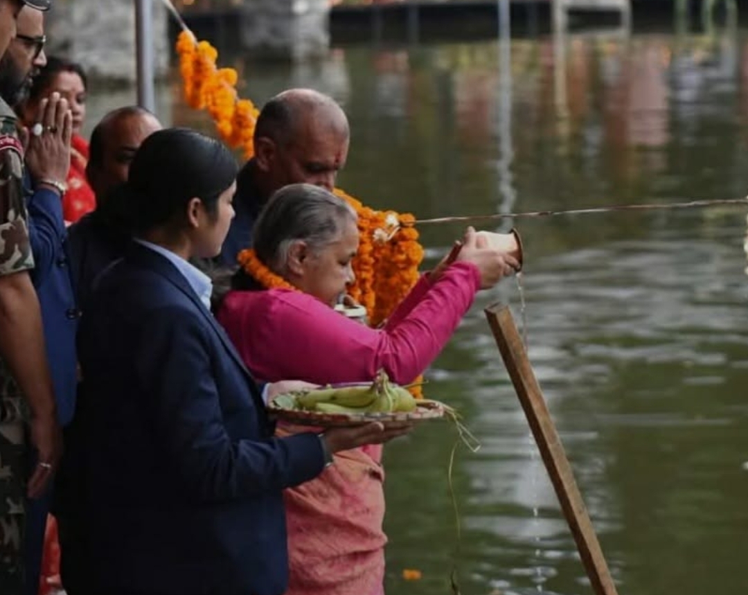 काठमाडौँ / प्रधानमन्त्री सुशीला कार्कीले आज काठमाडौँको कमलपोखरीमा सम्पन्न छठ पर्वको पूजाआजामा सहभागी भएर अस्ताउँदो सूर्यलाई अर्घ्य अर्पण गरेकी छन्।